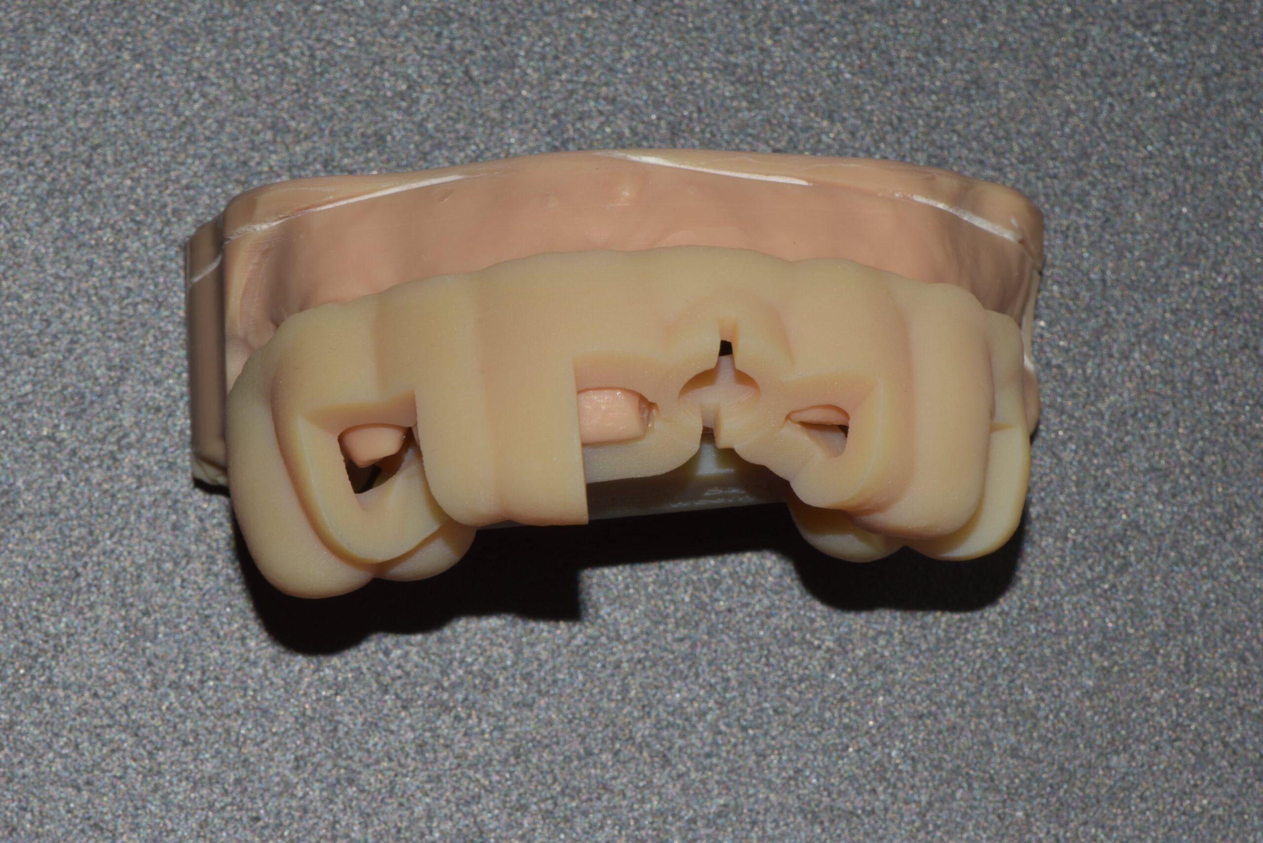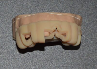 We manufacture and use a surgical guide to aid in efficient, accurate and minimally invasive implant placement. A surgical guide is a template that fits over the dental arch and marks exactly where and at what angle to place each implant.