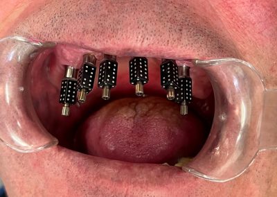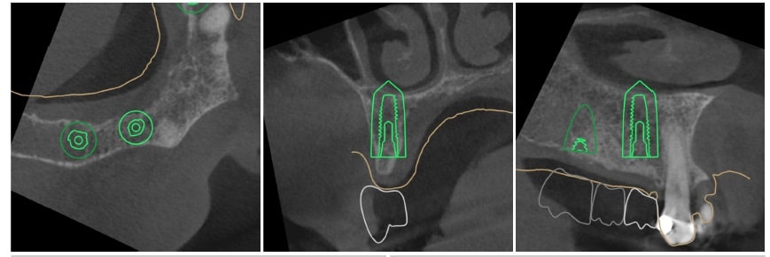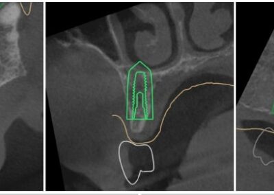 Using the 3D images in special planning software, the Dentist maps out the exact position and angle of insertion of each implant. They take care to place implants where they will be stable and in the best position to support the replacement teeth. They will also plan out any bone grafting (if needed) to ensure the implants have strong bone support.